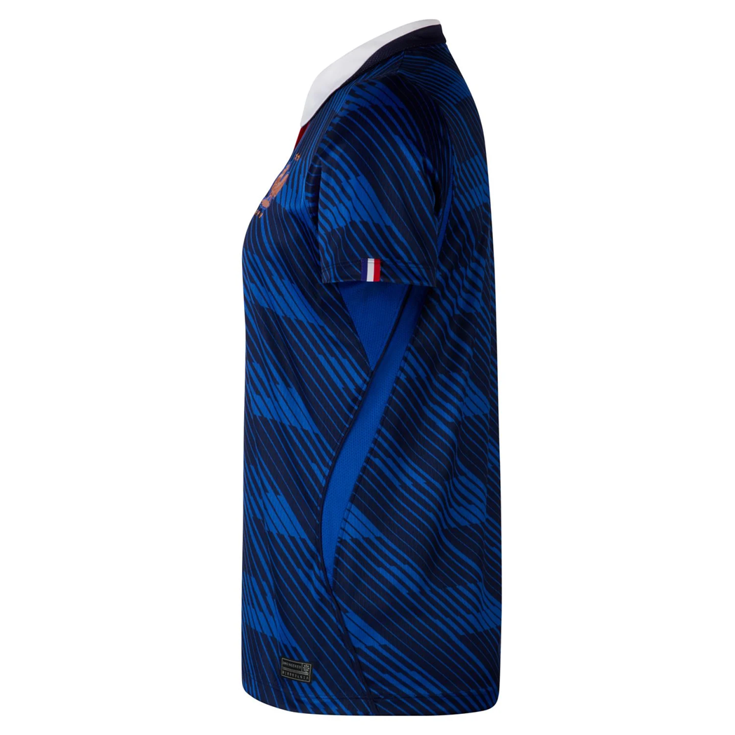 The France 2026 Home Jersey – Women's celebrates the nation’s football culture with its iconic French Blue, “FFF” print, and metallic accents. Perfect for match days, training, or casual wear, this jersey embodies the pride and passion of French football for female supporters.